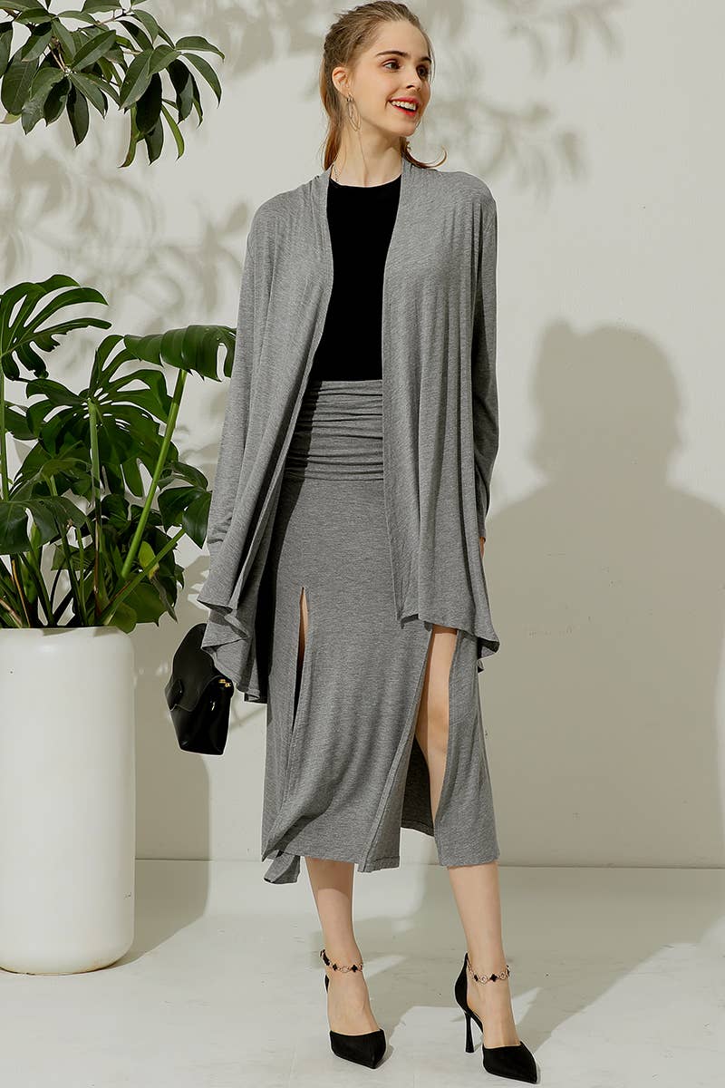 HIGH WAIST SHIRRED FLOUNCE MAXI SKIRTS WITH SLIT