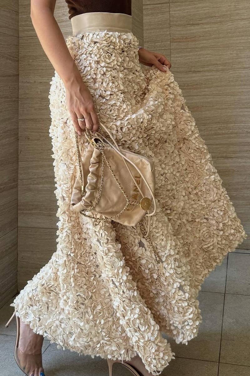 AUTUMN SMALL PETAL DESIGN PLASTER SLIT SKIRT