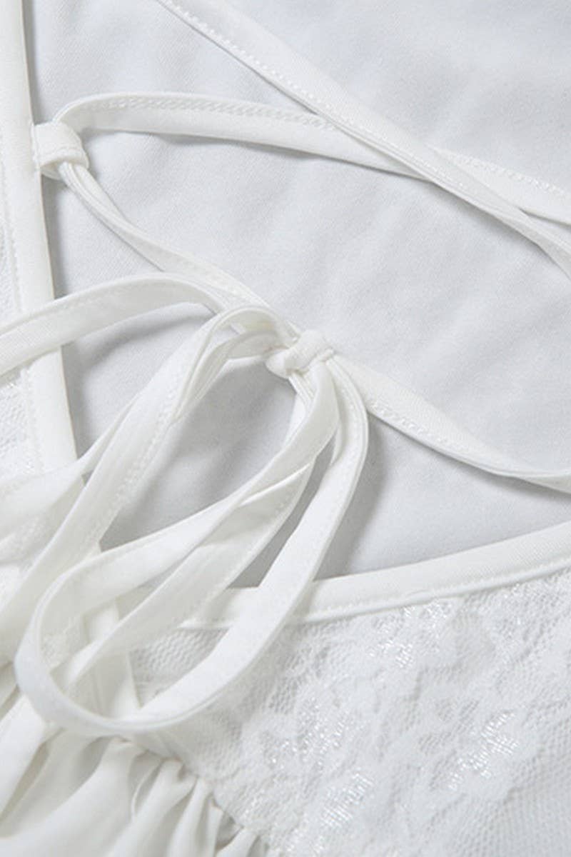 SOLID COLOR HALTERNECK TIE BUBBLE SHORT DRESS