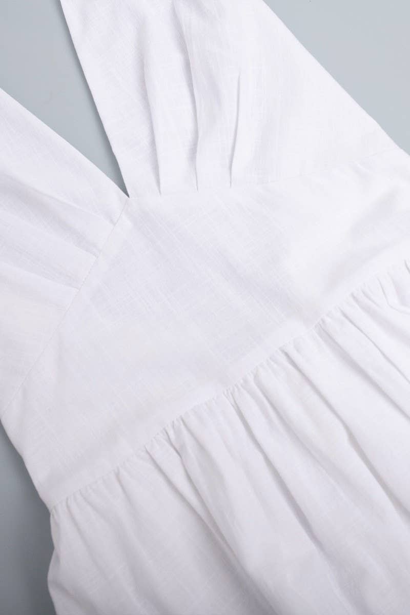 COTTON V-NECK TIE-WAIST FLOWY MAXI DRESS