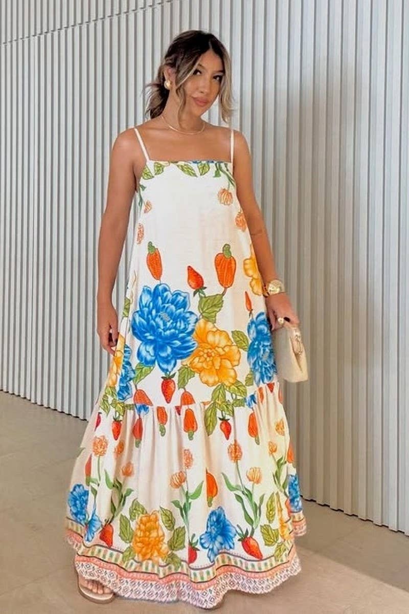 SUMMER SEXY SUSPENDER PRINT SWING DRESS