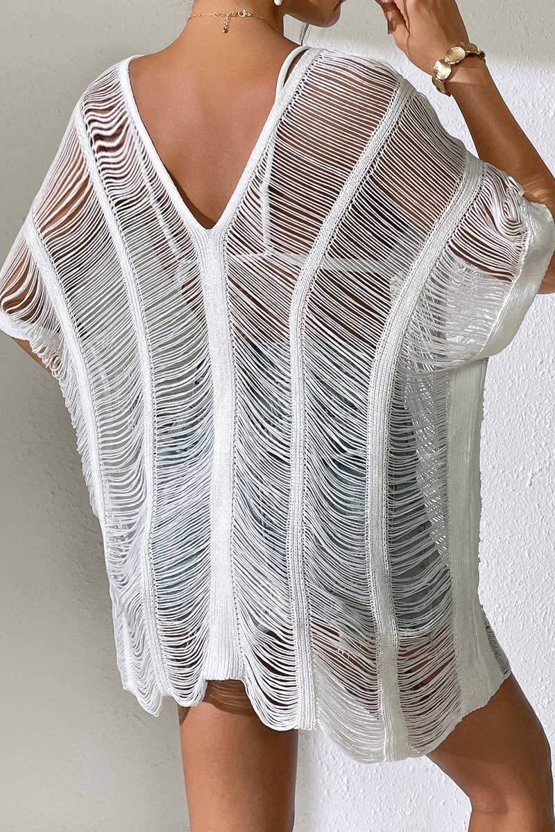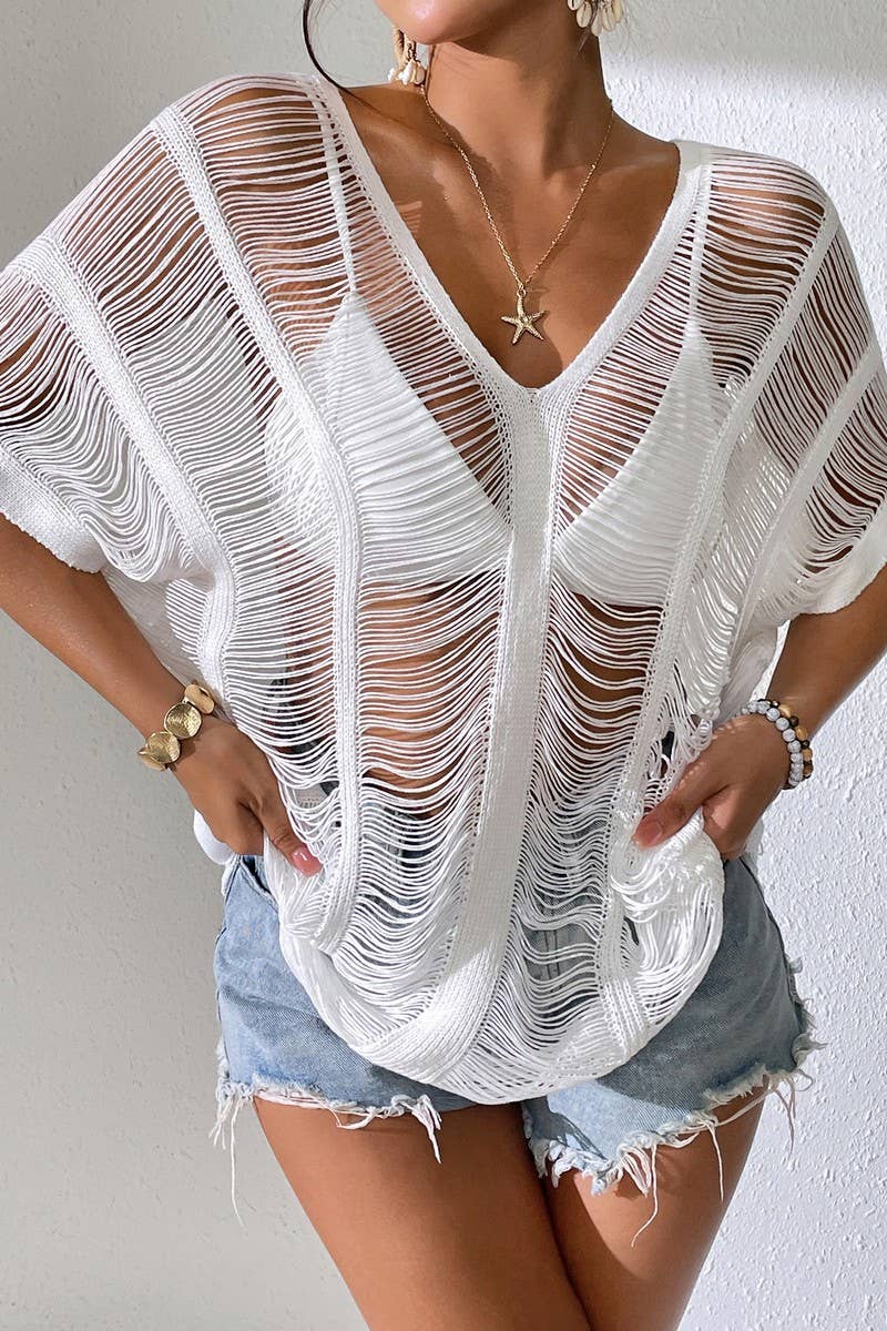 V-NECK HOLLOW SEXY BIKINI BEACH COVER-UP