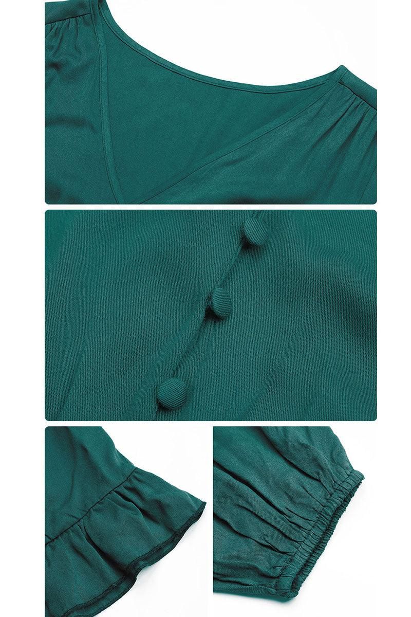 V NECK DRAWSTRING WAIST RUFFLED LONG DRESS