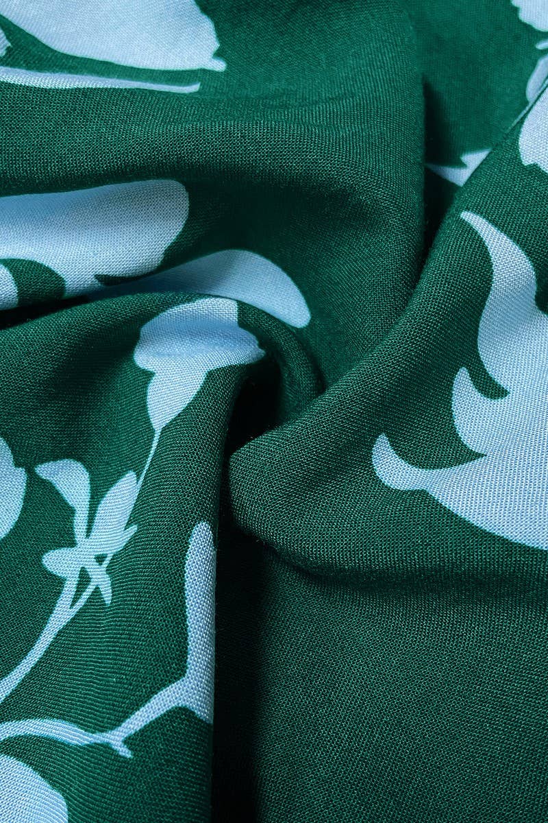 V-NECK FLORAL PRINT BUTTON-DOWN LONG DRESS