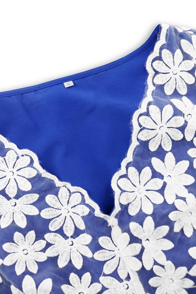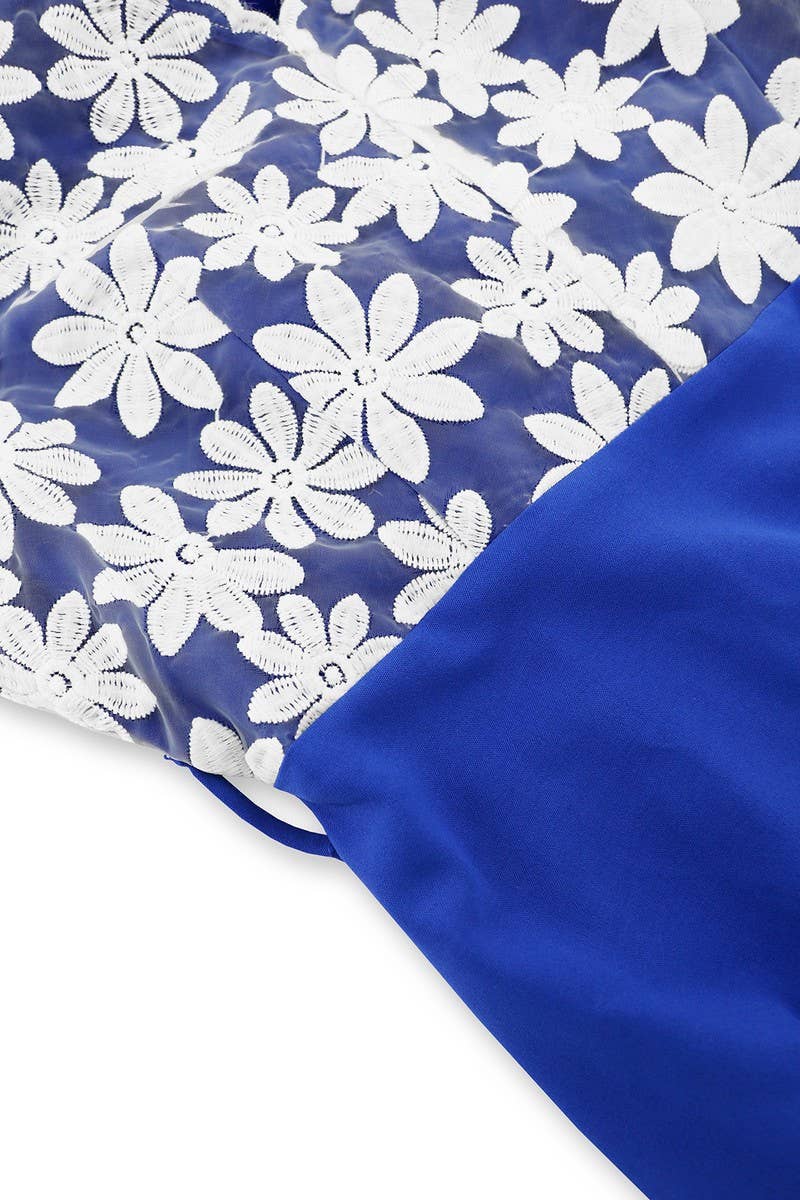 LACE-UP V-NECK LACE-TRIMMED CONTRAST DRESS