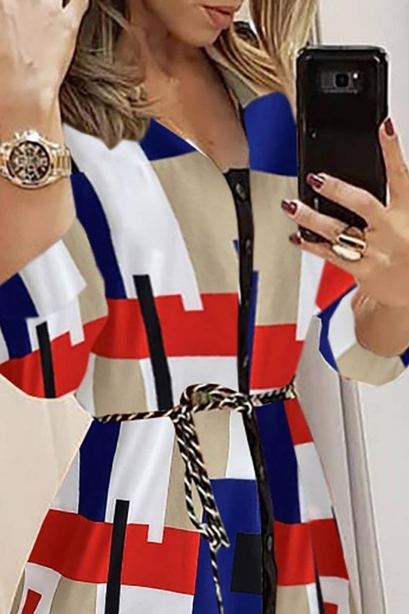 PLAID PRINT V-NECK THREE-QUARTER SLEEVE TIE DRESS