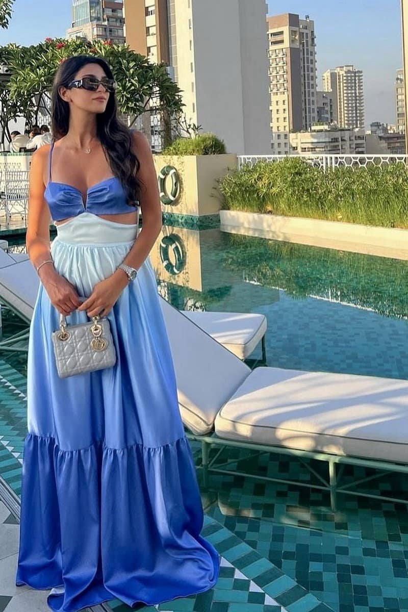 GRADIENT COLOR SUSPENDER LONG DRESS