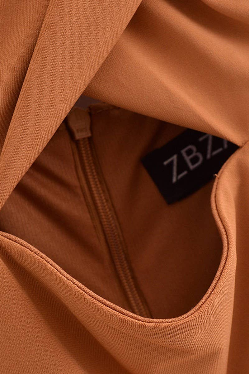 SOLID COLOR PLEATED HOLLOW BACKLESS DRESS