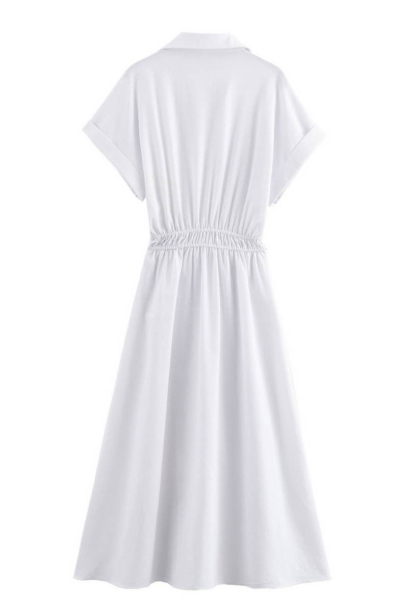 LAPEL SOLID COLOR LONG SLEEVE SHIRT LONG DRESS