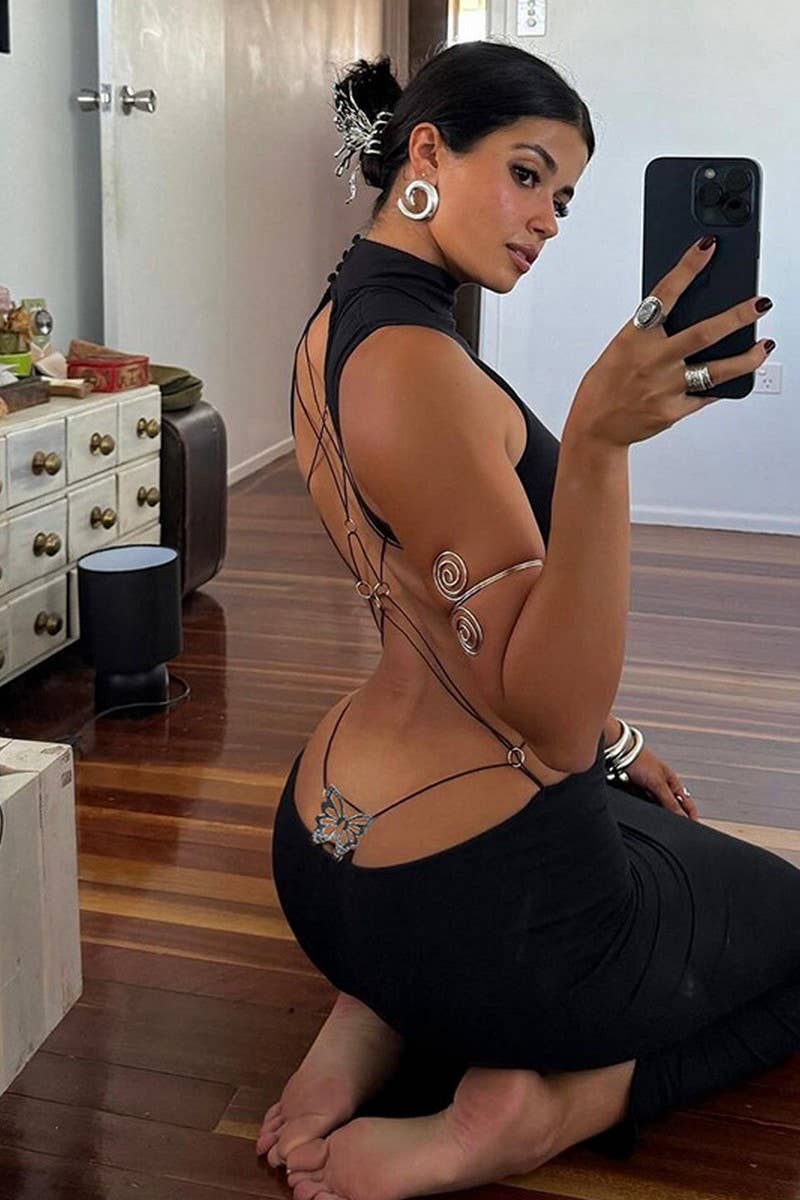 SOLID COLOR BACKLESS BOW SLIM FIT HOT GIRL DRESS