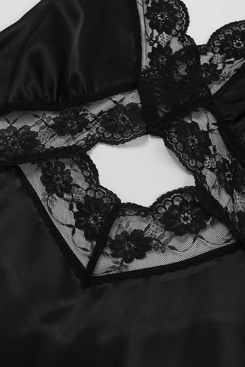 V-NECK HOLLOW LACE BLACK FISHTAIL DRESS