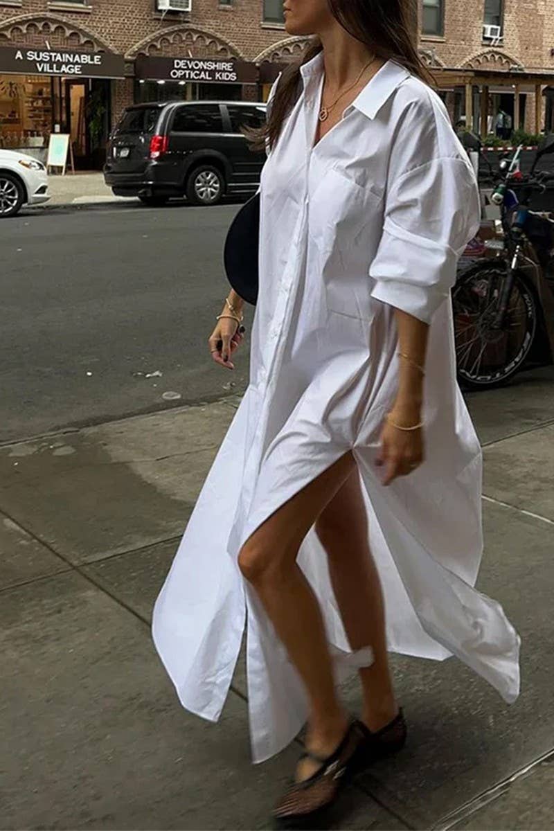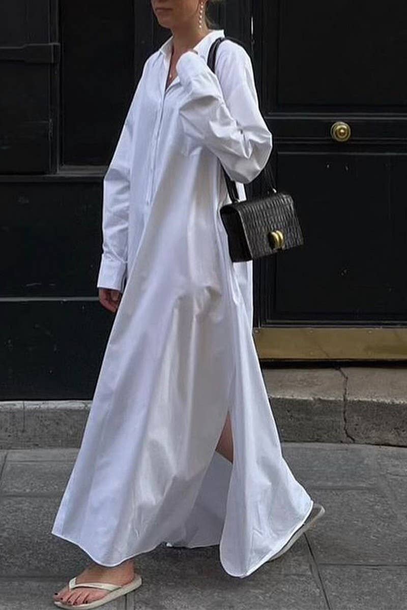 SOLID COLOR BUTTON CARDIGAN LONG SLEEVE DRESS