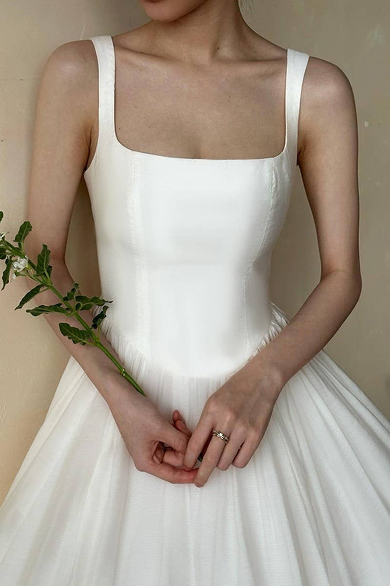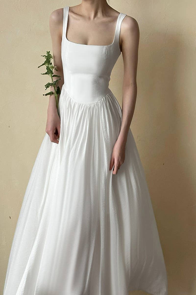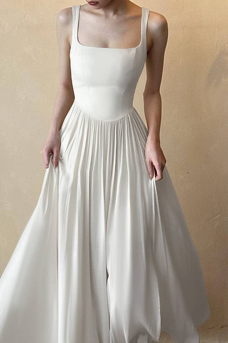 SQUARE NECK SLIM FIT SPAGHETTI STRAP DRESS