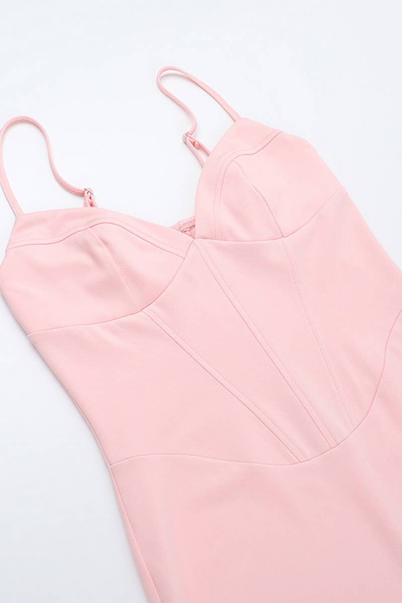SPAGHETTI STRAP BACKLESS WAIST SLIM MAXI DRESS