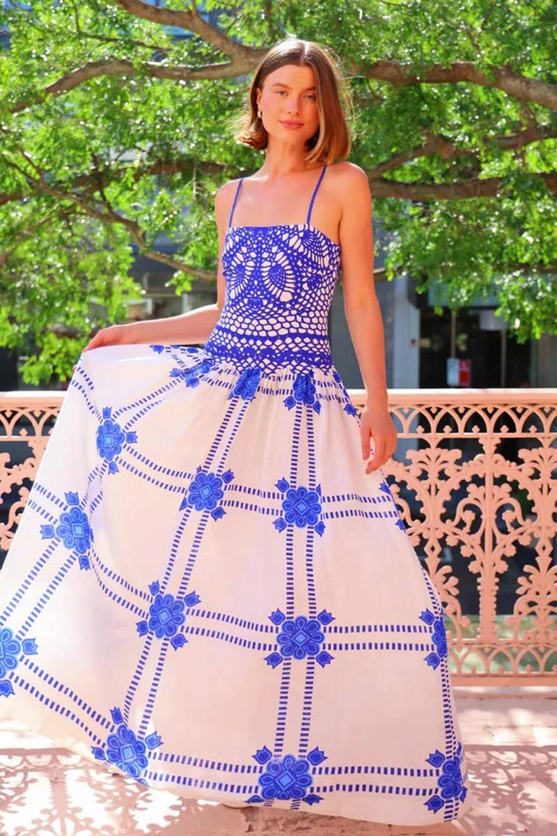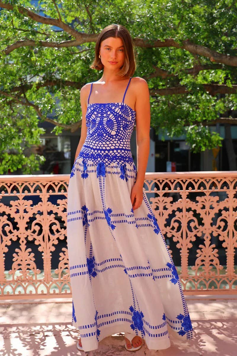FLORAL LACE TRIM SPAGHETTI STRAP DRESS