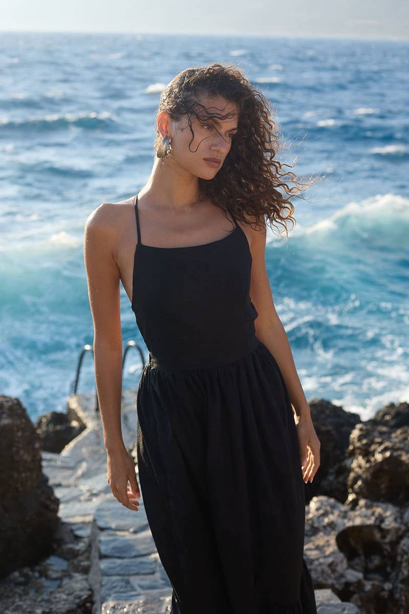 COTTON BACKLESS TIE-STRAP MAXI DRESS