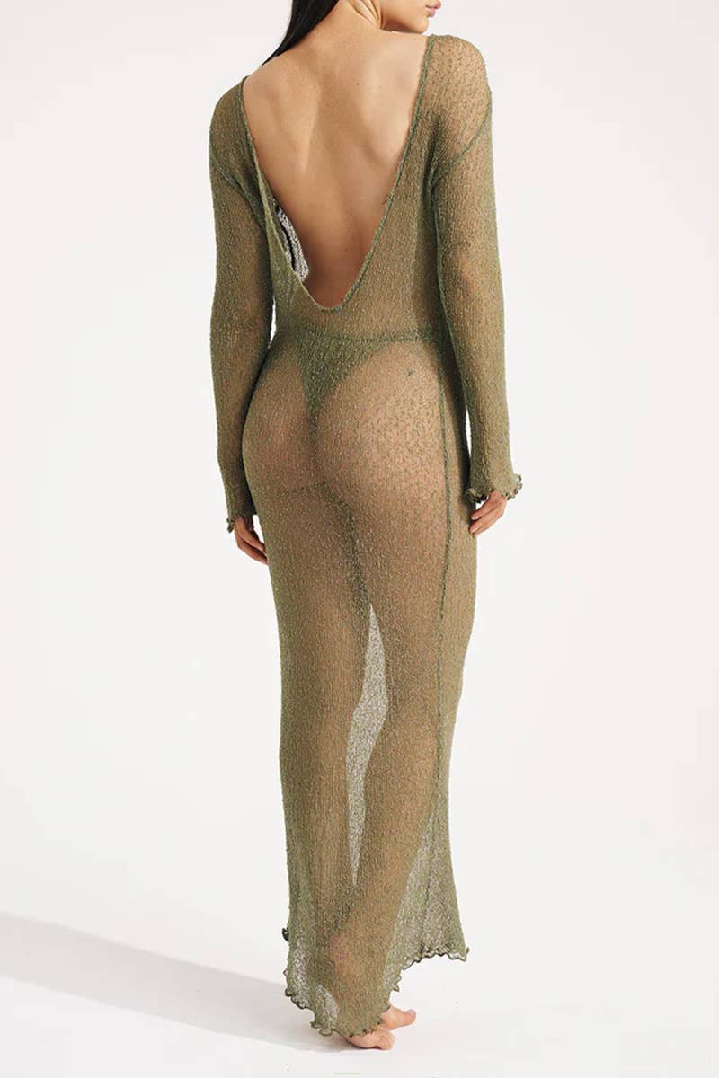 SLIM FIT HOLLOW OUTERWEAR KNITTED DRESS BLOUSE