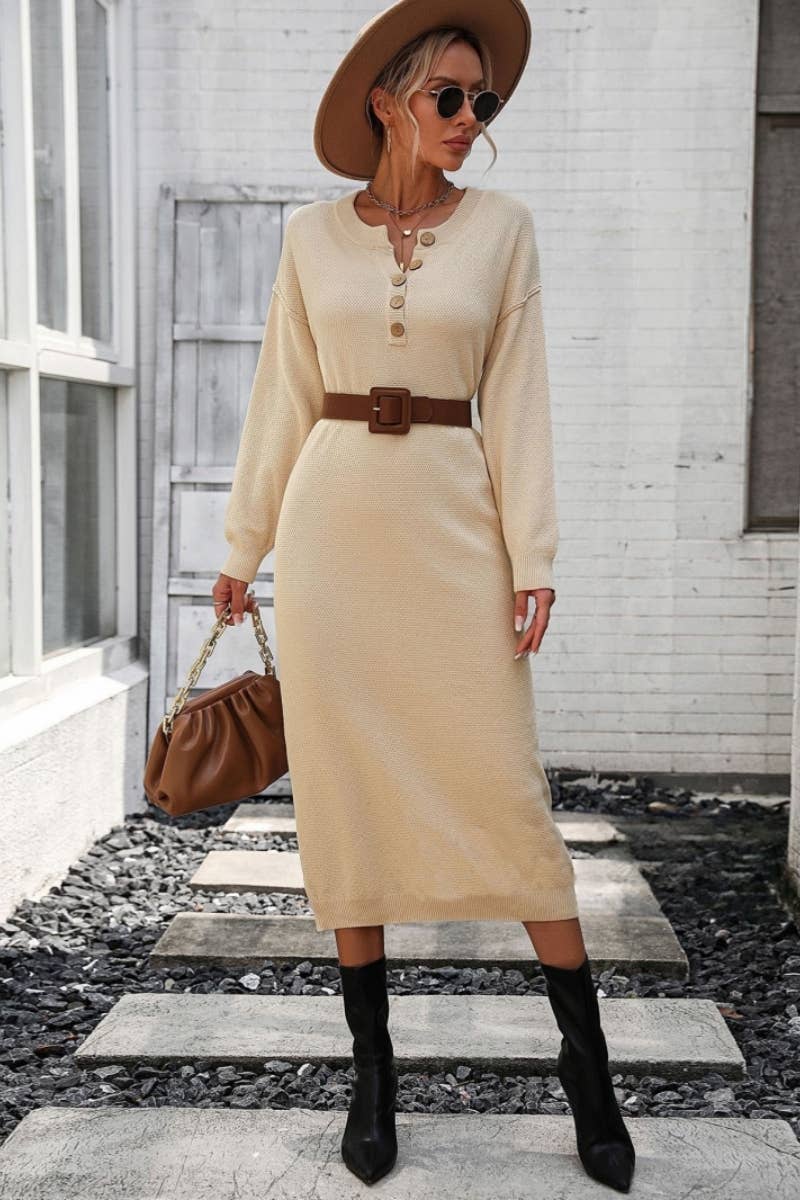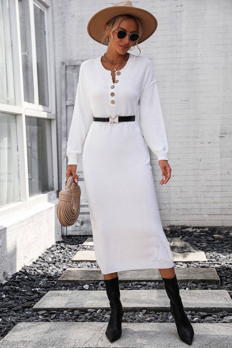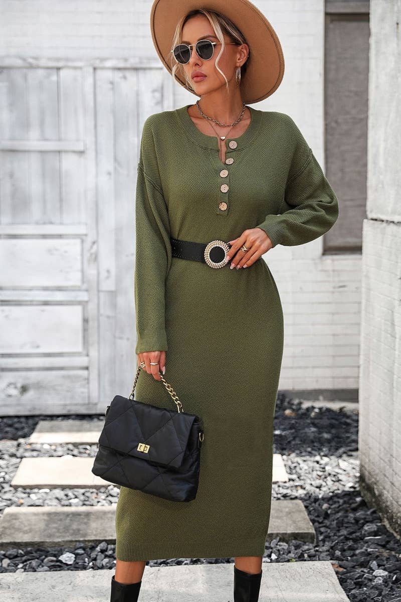 Long Sleeve Loose V-Neck Button Tops Long Sweater