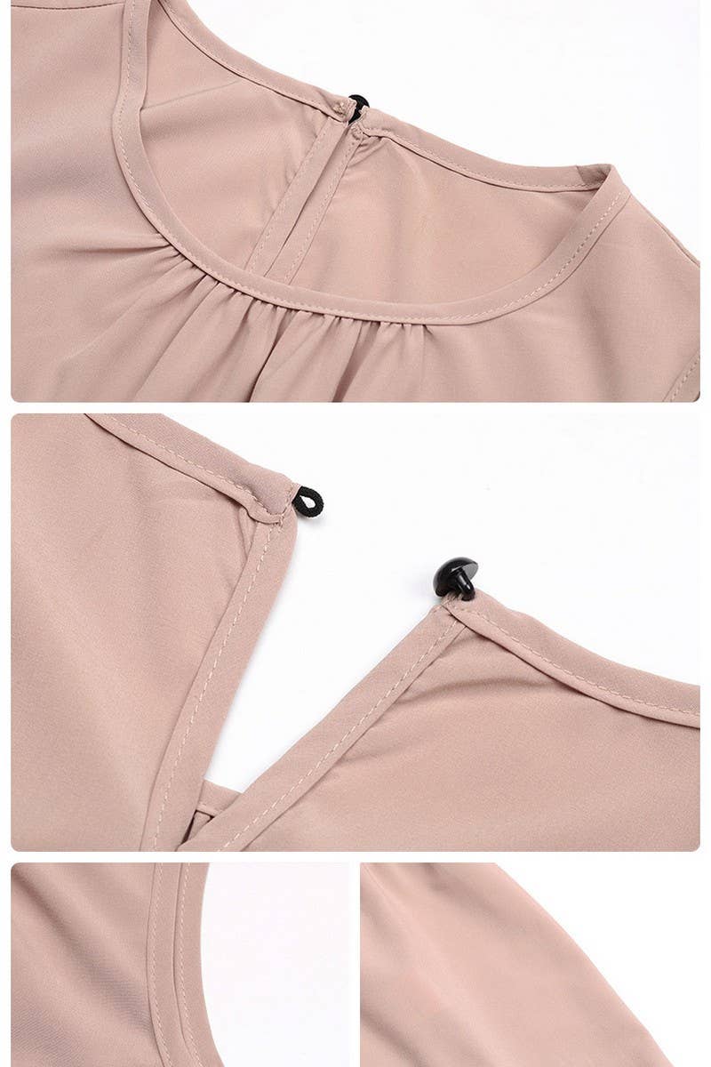 SOLID RUFFLED SLEEVELESS PLEATED MIDI DRESS