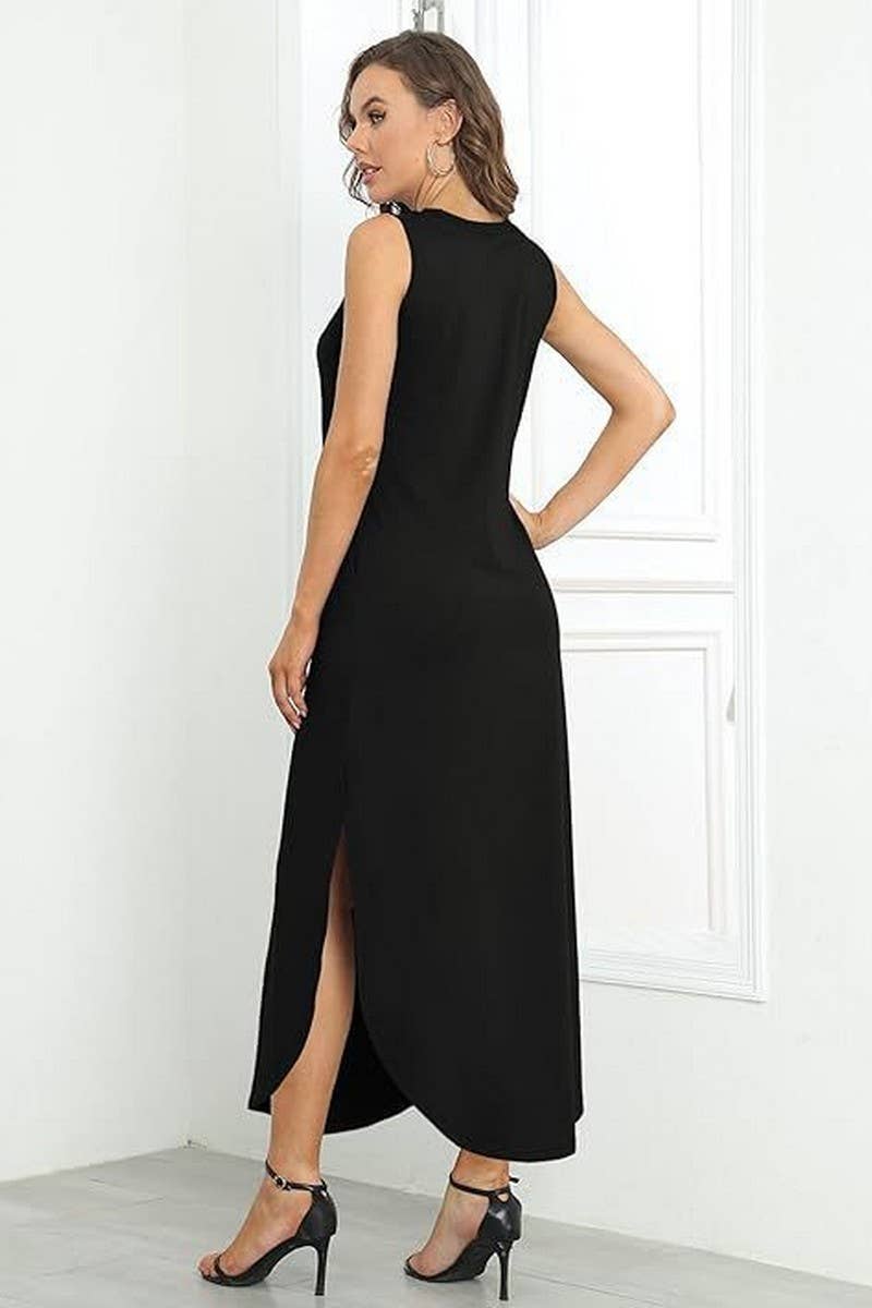 SLEEVELESS FLORAL PRINT PULLOVER MAXI DRESS