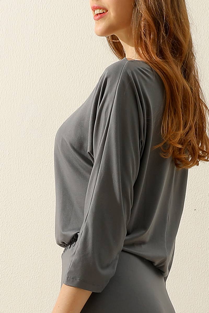 BOAT NECK LONG SLEEVE DRAWSTRING KNEE MIDI DRESS