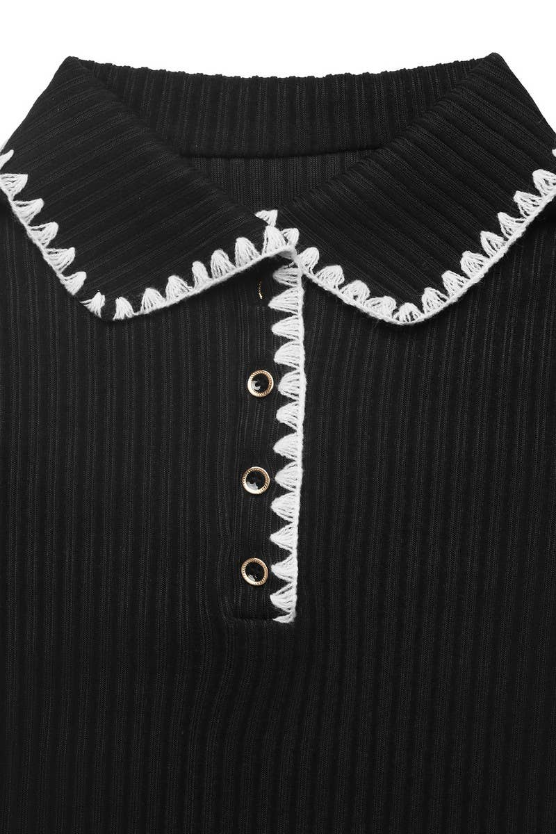 CONTRAST-EDGED KNITTED SLIM-WAIST A-LINE DRESS