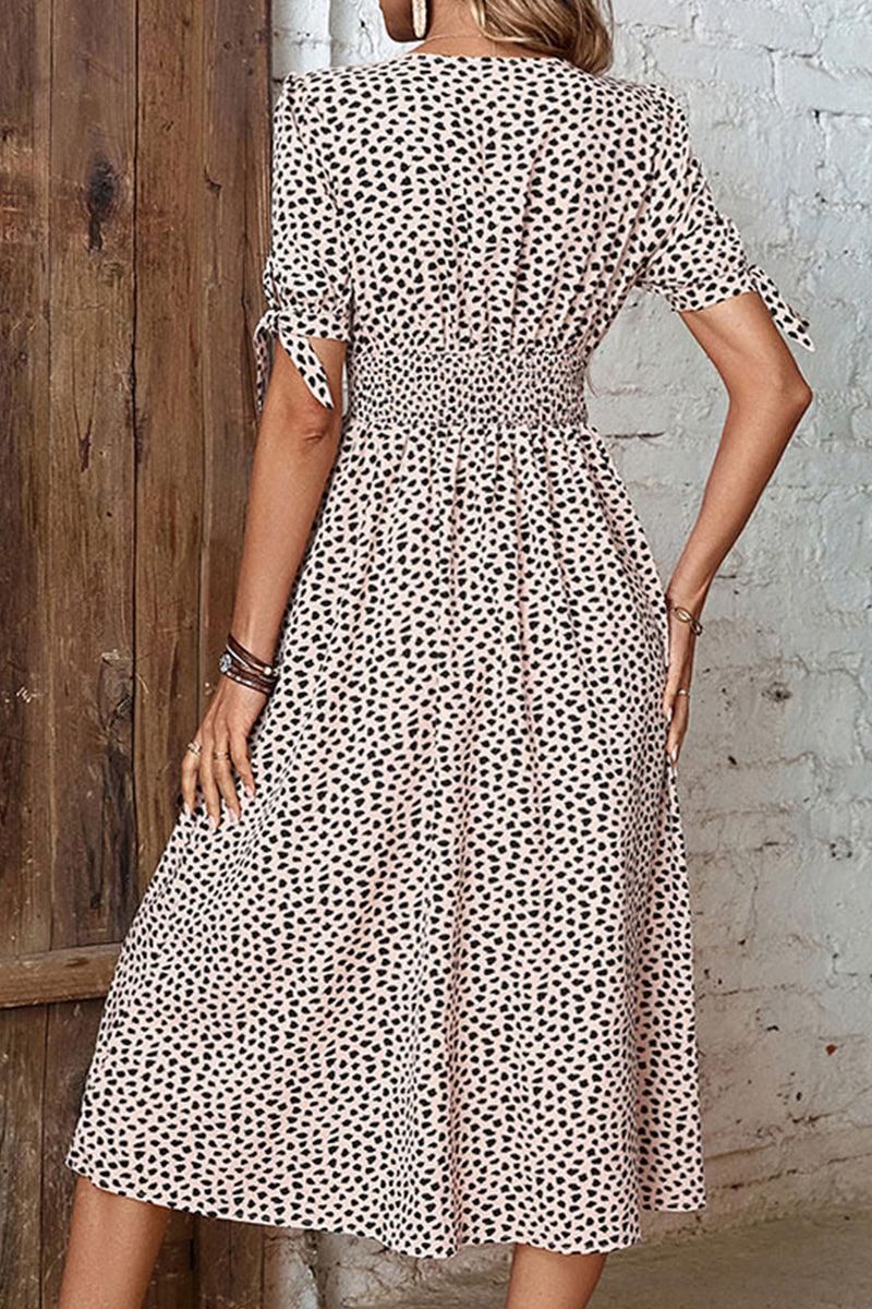 LEOPARD SHORT TIED SLEEVE BUTTON UP SLIT DRESS