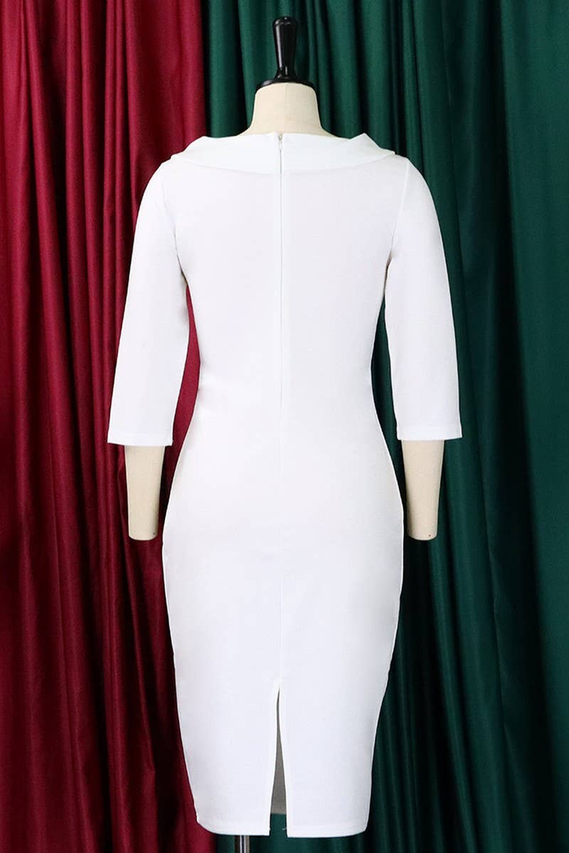 PLUS SIZE V-NECK WAIST MIDI DRESS