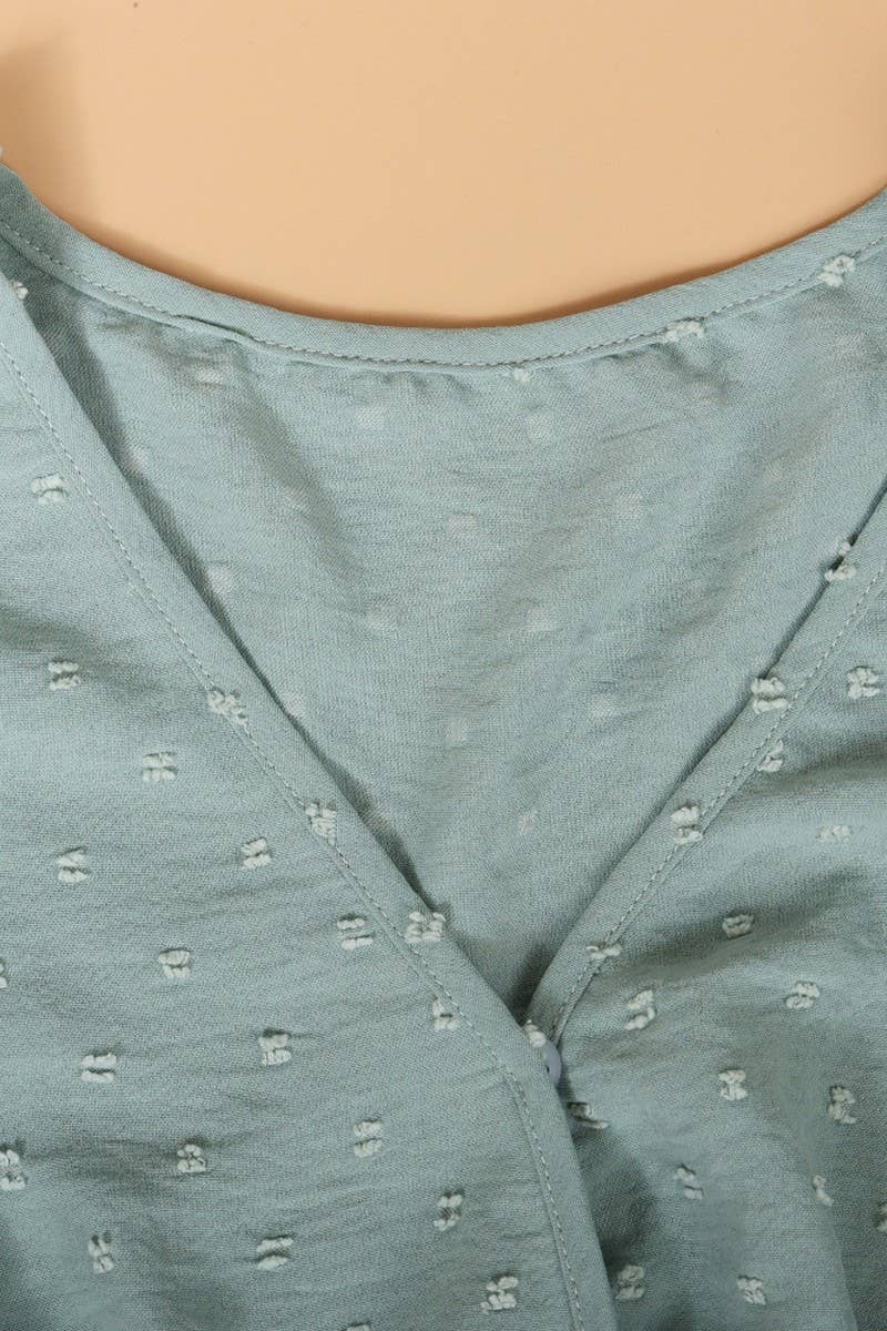 V-NECK PINCHED WAIST JACQUARD SHORT DRESS