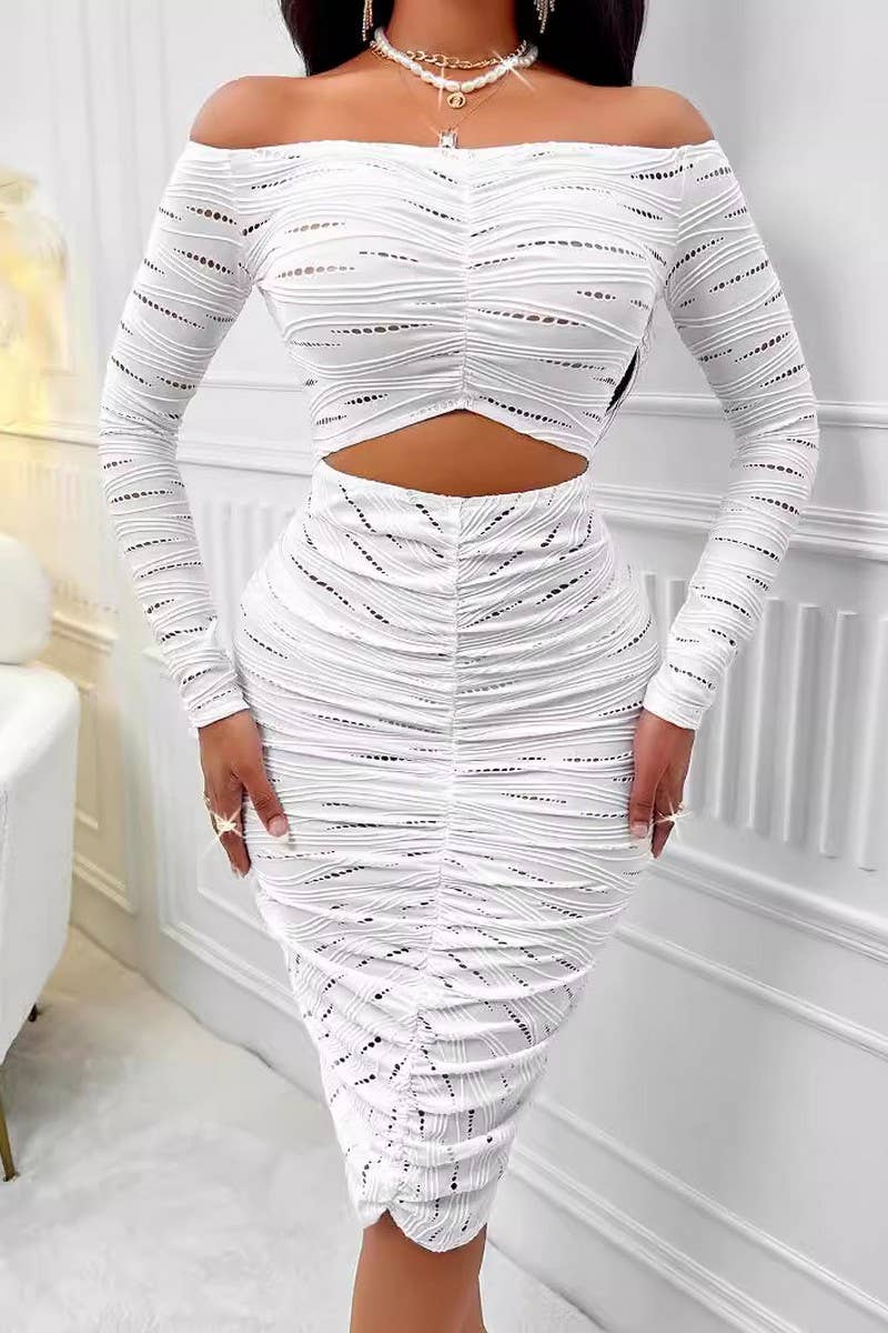 SEXY ONE-SHOULDER LONG-SLEEVED HOLLOW DRESS