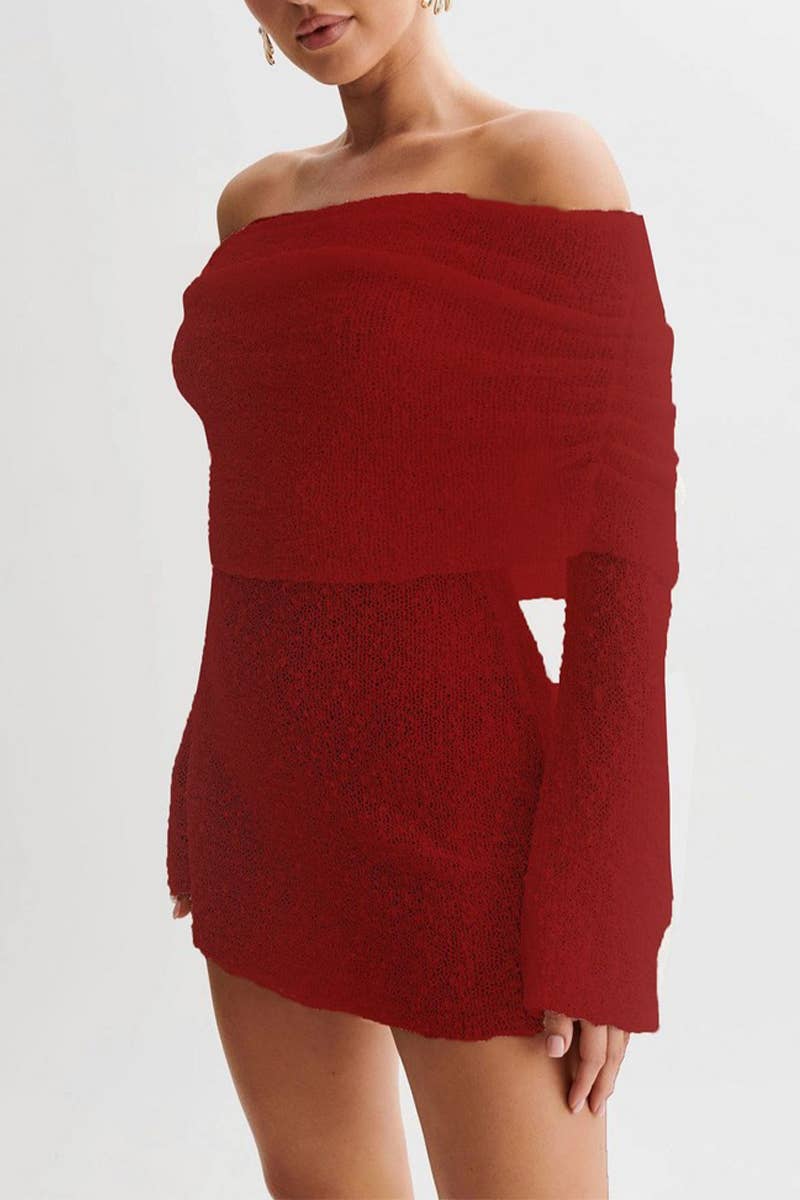 SHEER LONG SLEEVE ONE SHOULDER SHORT DRESS