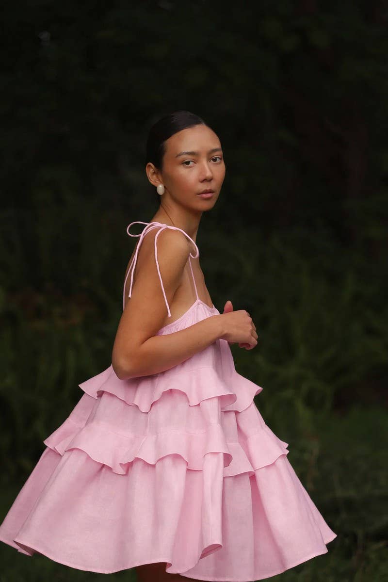 SUMMER LAYERED RUFFLE BACKLESS MINI DRESS