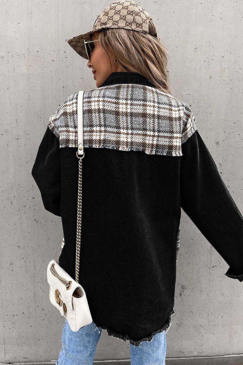 WOMEN DENIM PATCHWORK PLAID JACKET