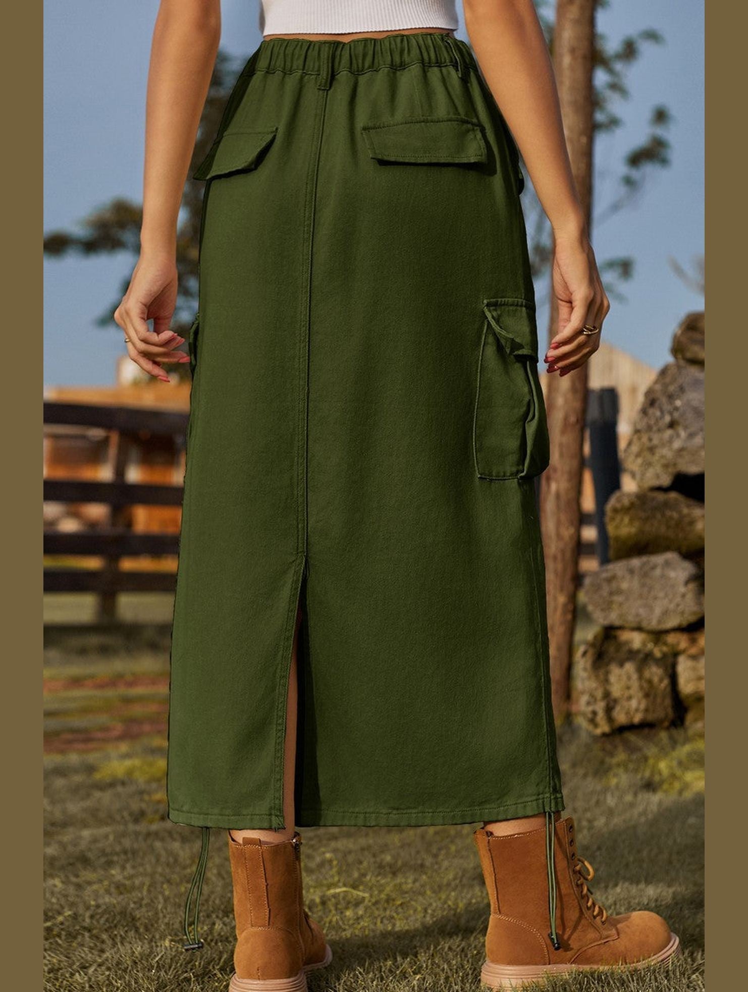 WOMEN DRAWSTRING LONG LENGTH CASUAL SKIRT