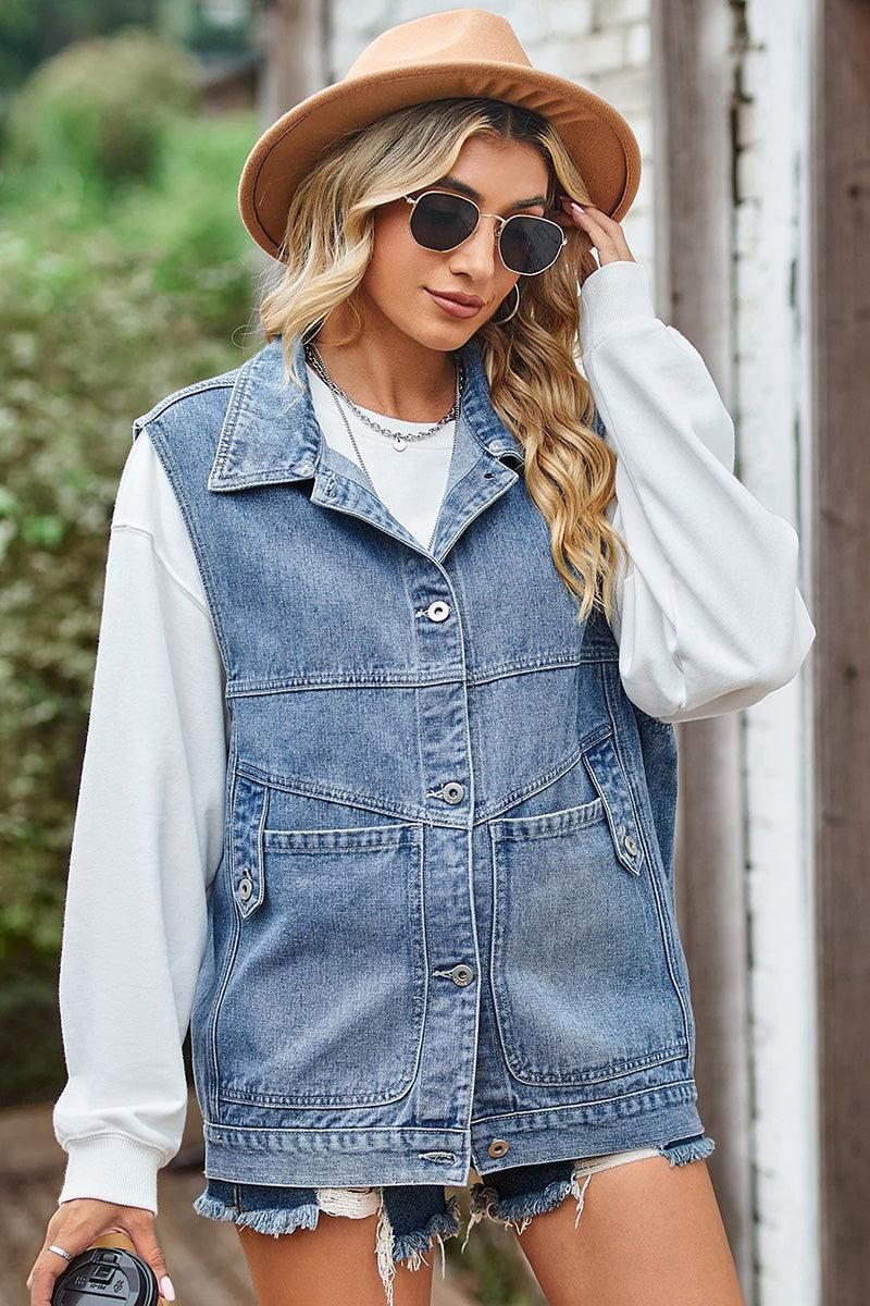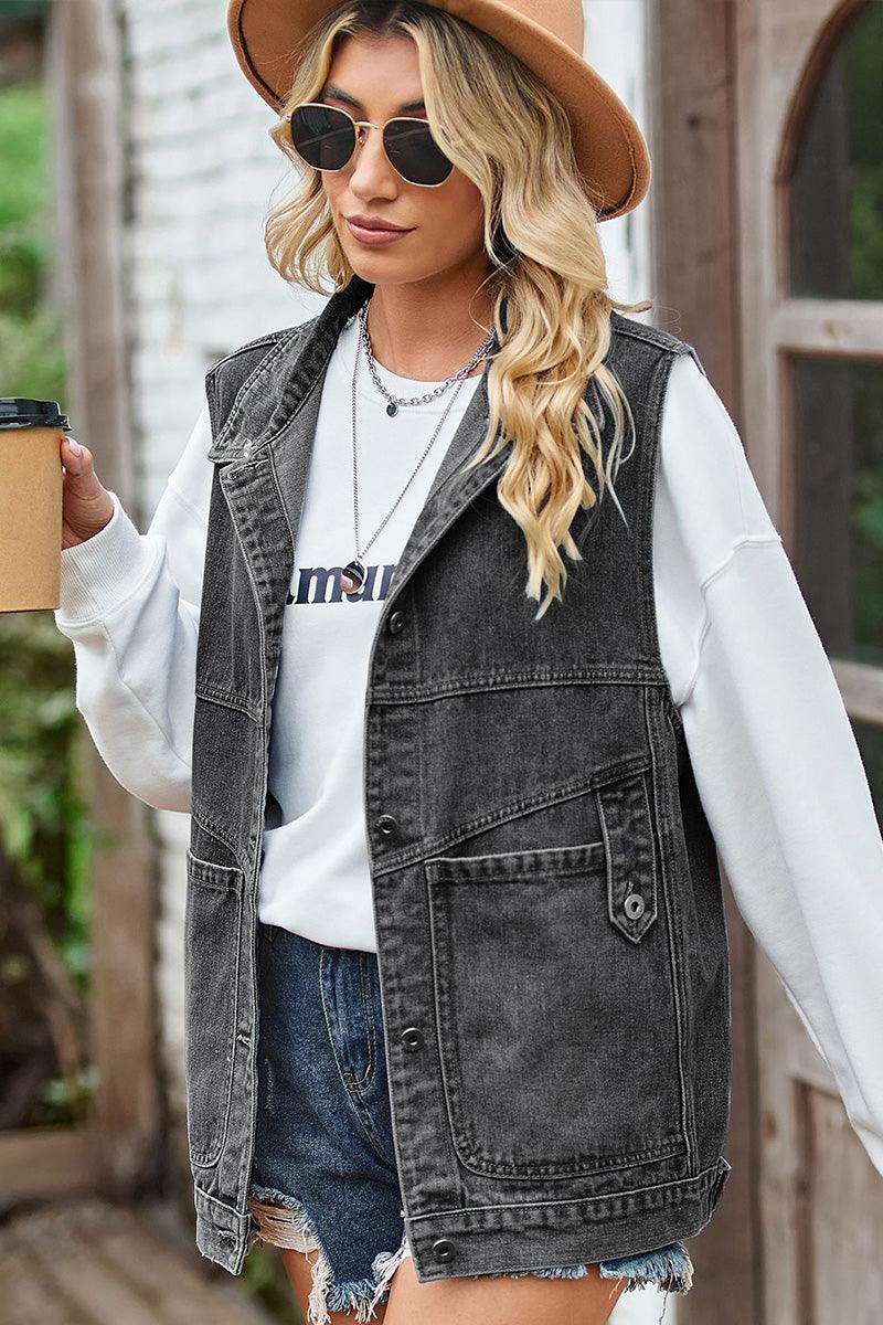 VINTAGE BUCKELE POCKET COLLAR DENIM VEST