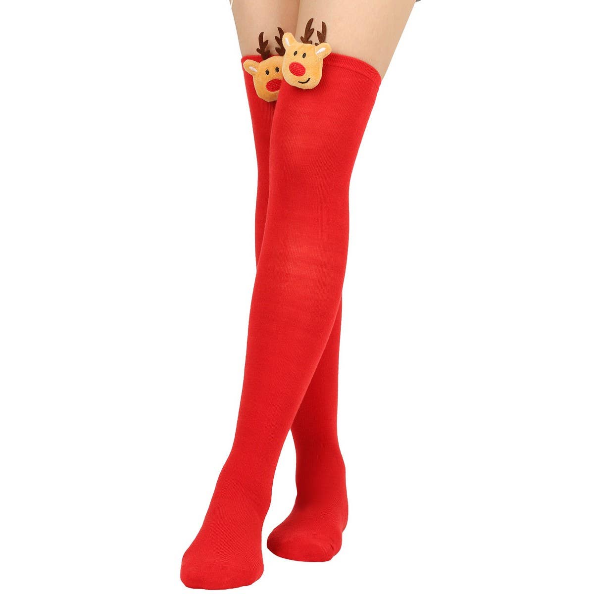 Christmas Over The Knee Socks Elk Stripes Holiday Show