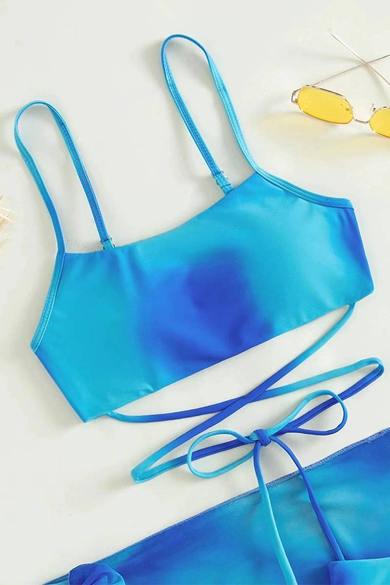 THREE-PIECE MESH SKIRT TIE-DYE BIKINI SWIMSUIT