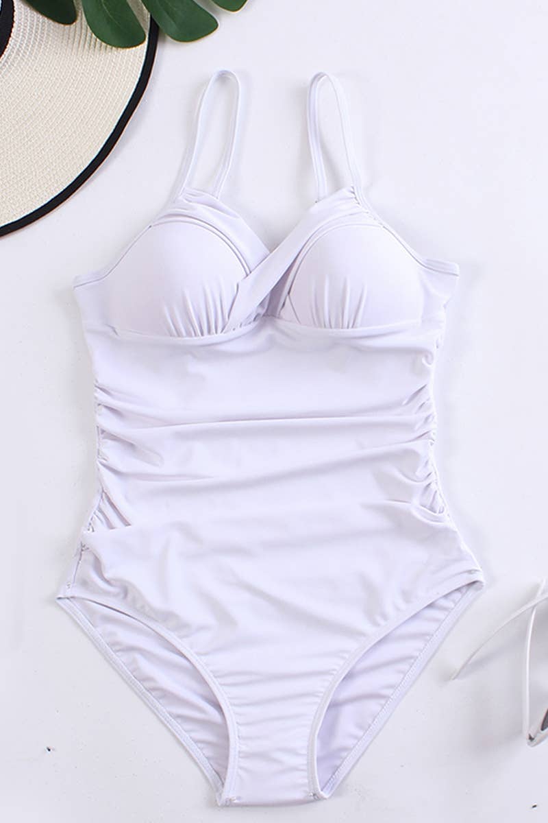 CROSS COLORED PLEATED ONE-PIECE SWIMSUIT