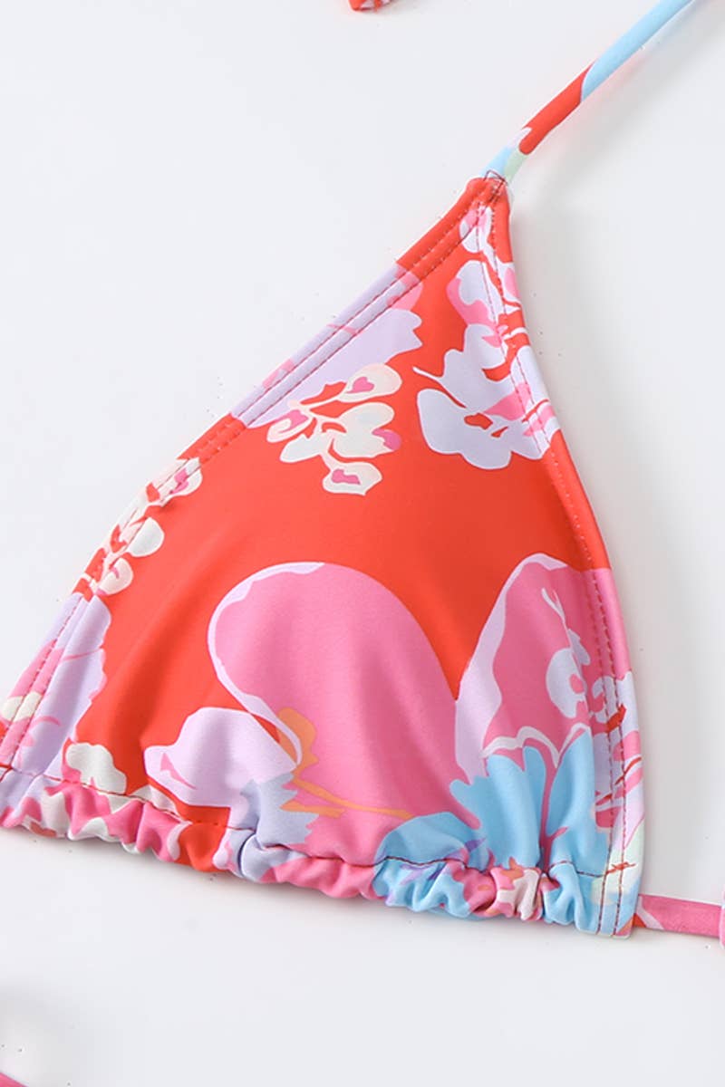 SEXY STRAP PRINTED SPLIT SWIMSUIT