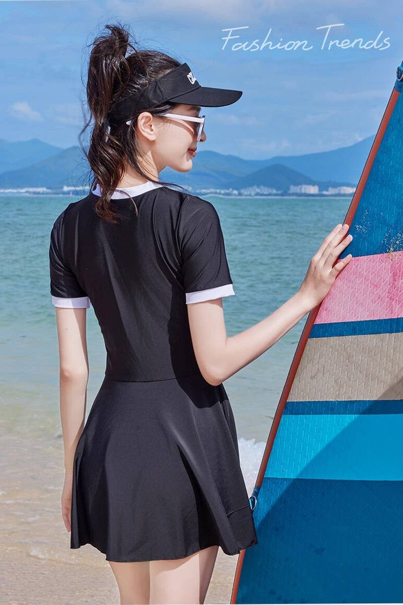 LETTERING PRINTED ONE-PIECE DRESS-STYLE SWIMSUIT