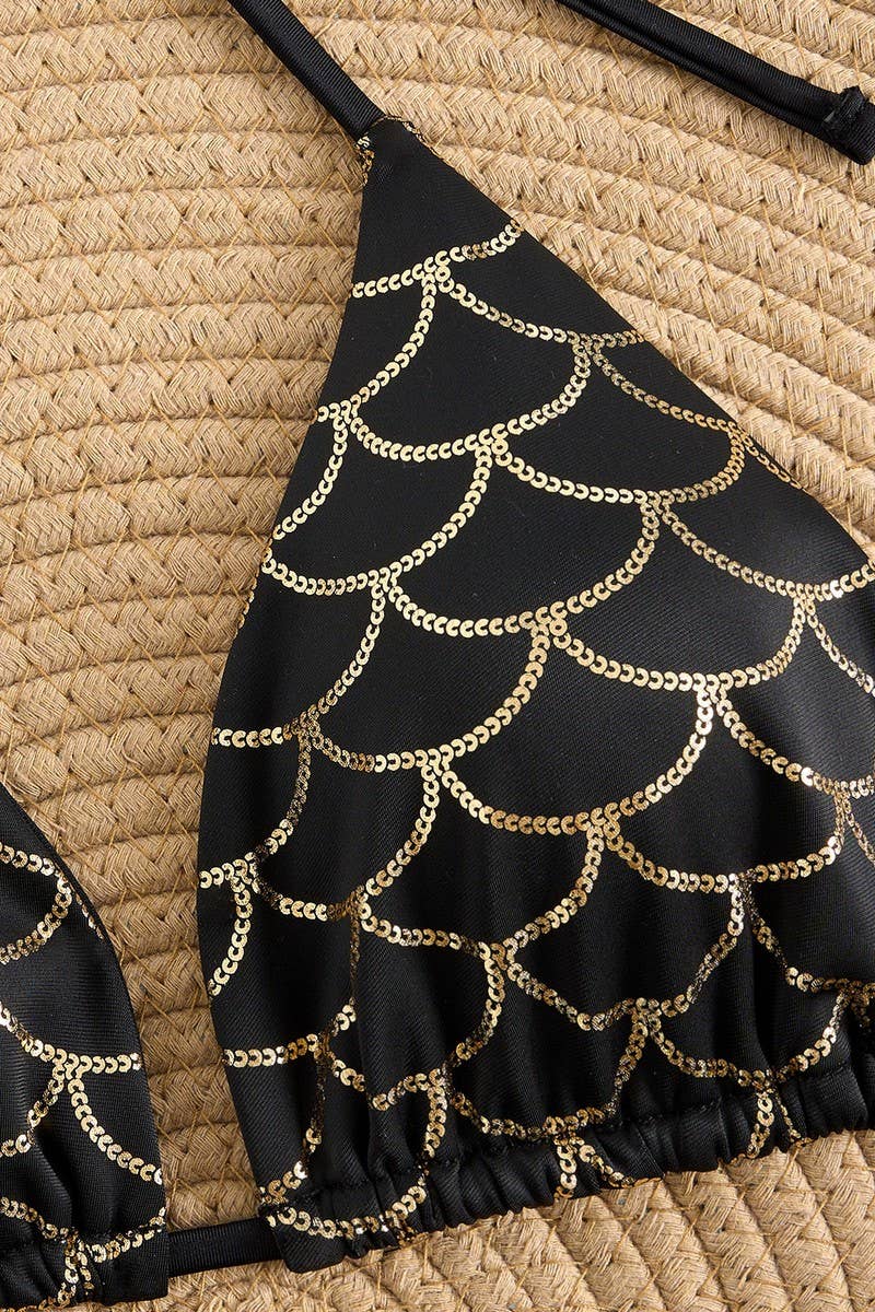 SEXY SHINY LACE-UP TWO-PIECE BIKINI SWIMSUIT