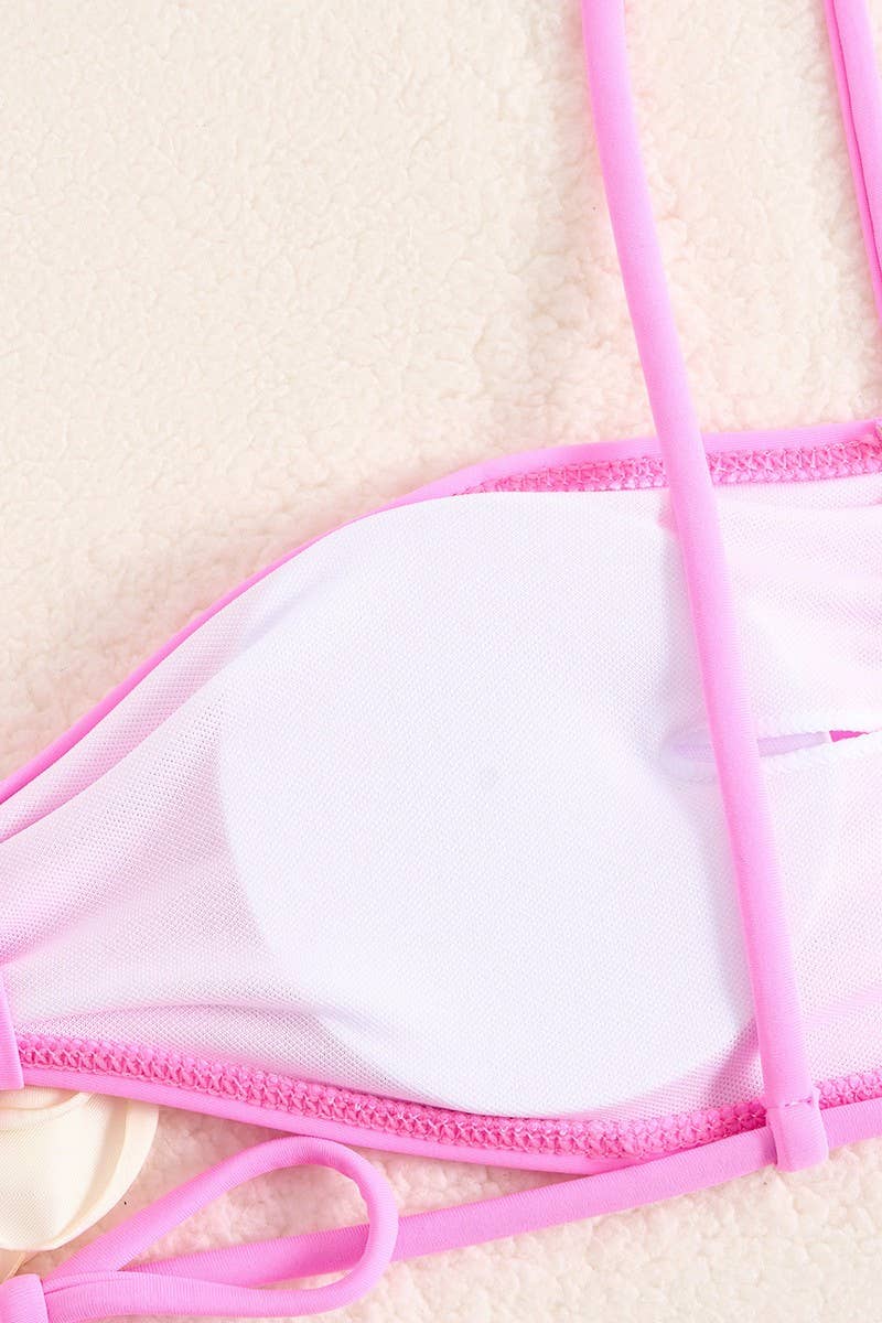 SOLID COLOR 3D FLOWER SPLIT BIKINI SWIMSUIT