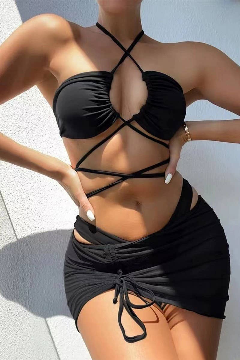 SEXY LACE-UP THREE-PIECE BIKINI SWIMSUIT