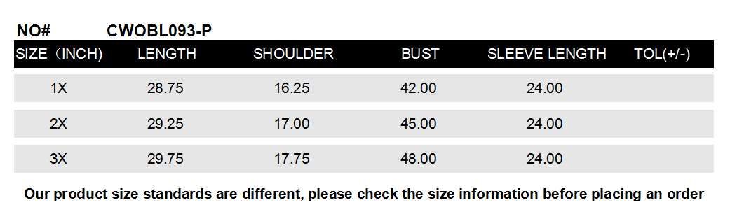 SIZE 1X / 2X / 3X