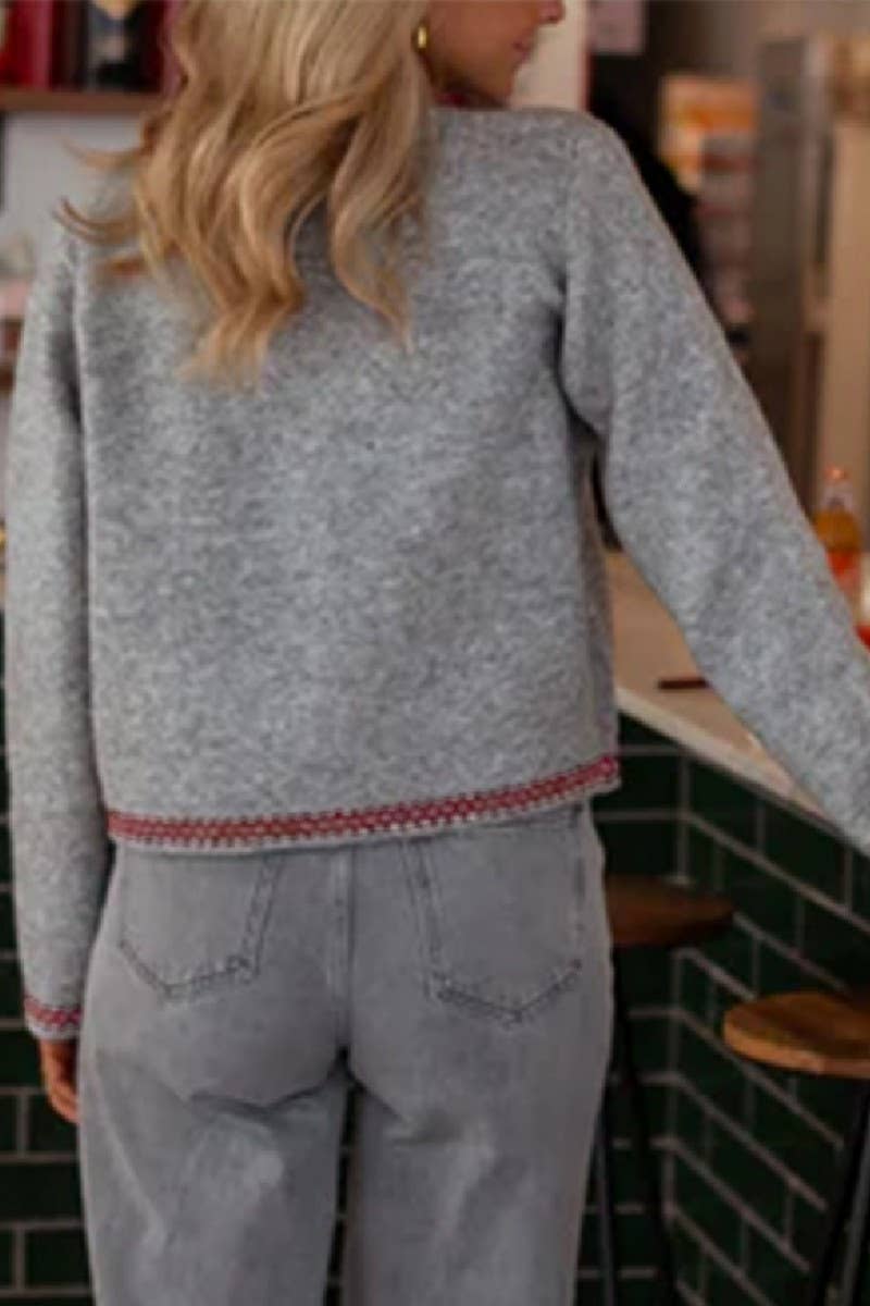 COLOR TRIM BUTTON FRONT LUXURY KNIT CARDIGAN