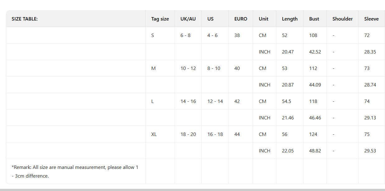 SIZES : S,M,L,XL