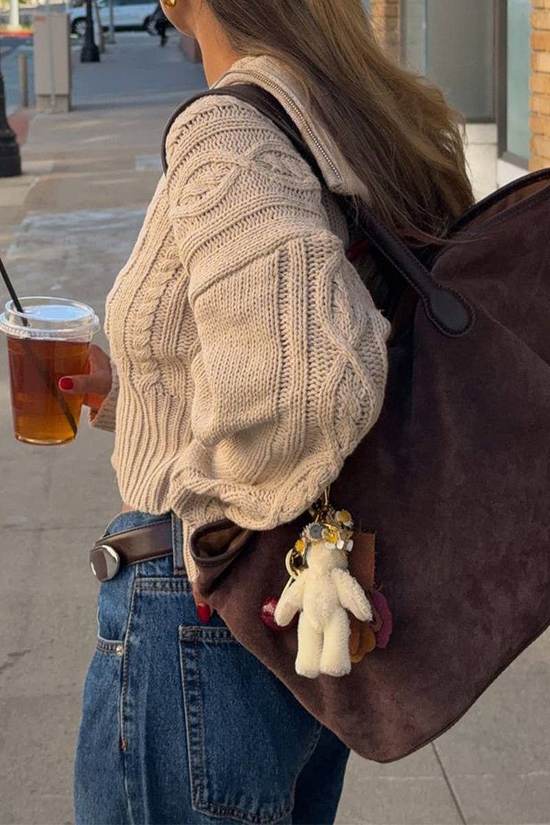 SOLID COLOR LONG-SLEEVED ZIPPER KNITTED JACKET