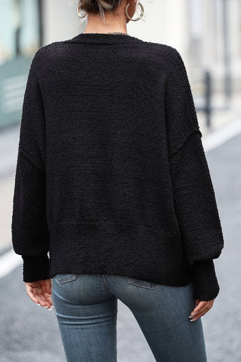 Button Down Long Sleeve V-Neck Cardigan Sweater