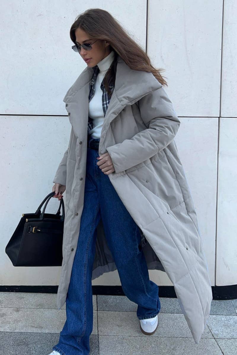STAND COLLAR LONG SLEEVE LONG COTTON-PADDED COAT