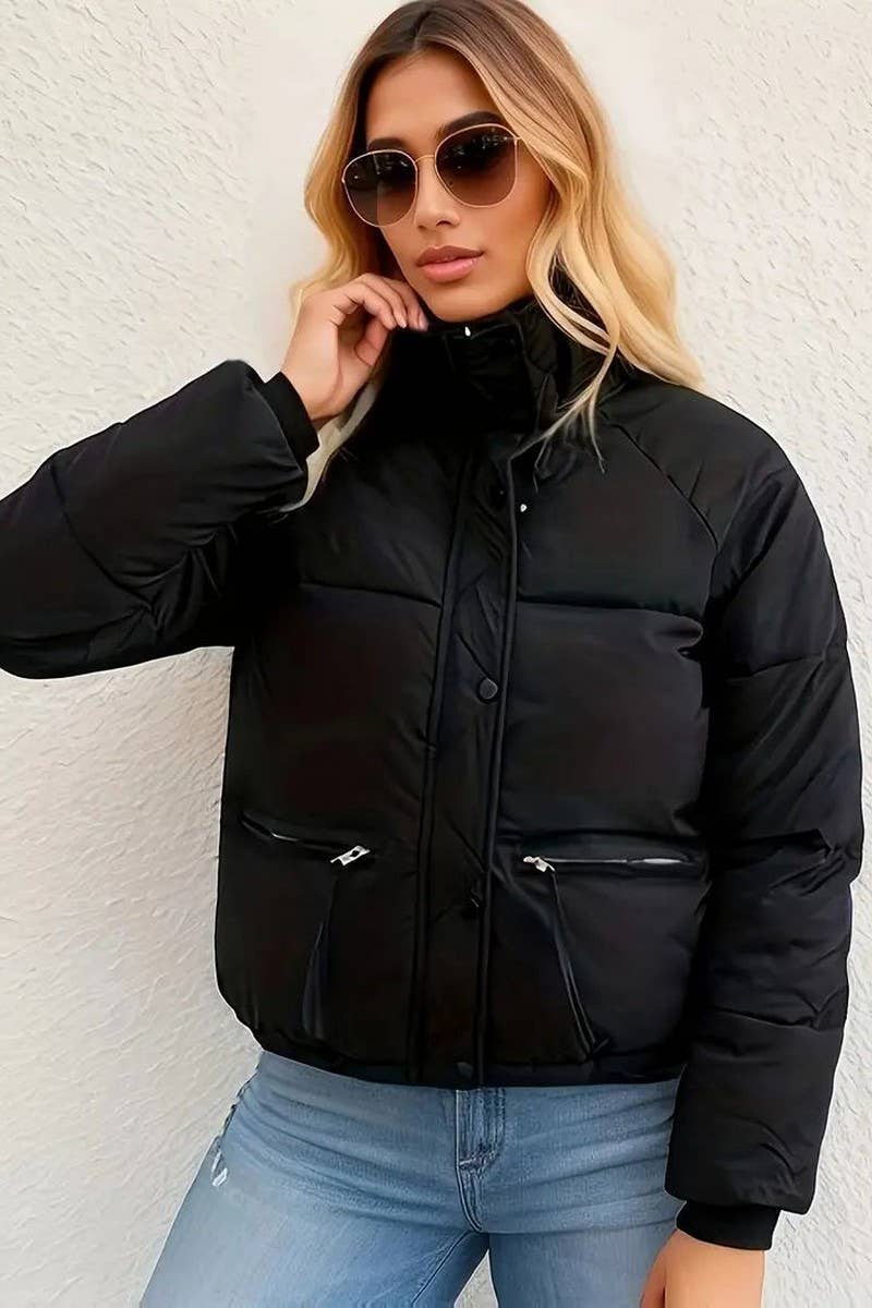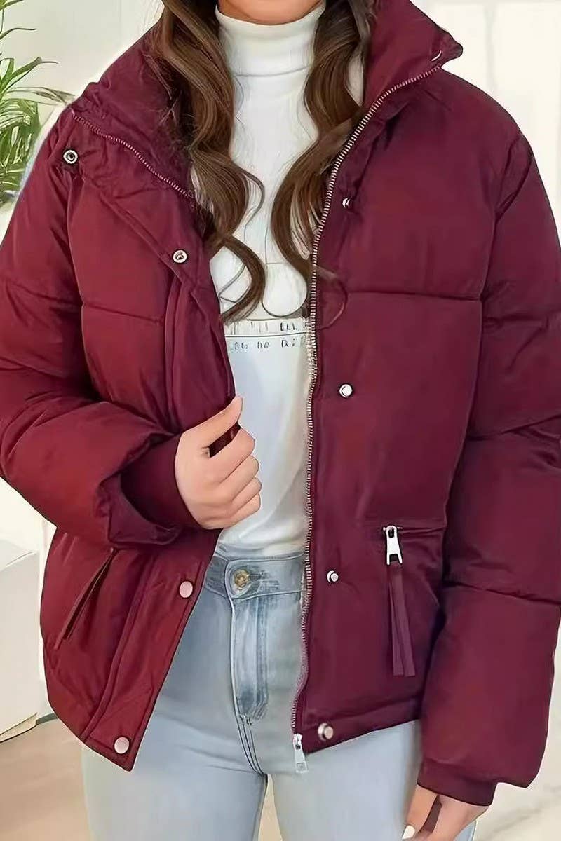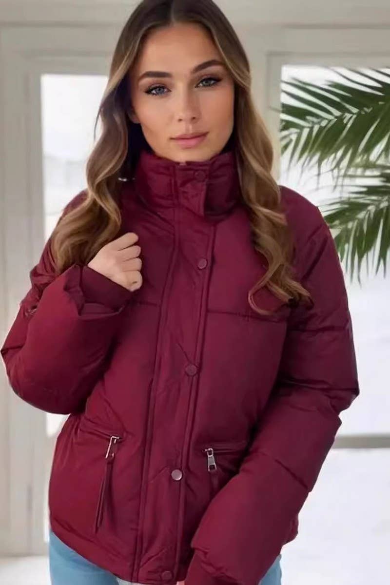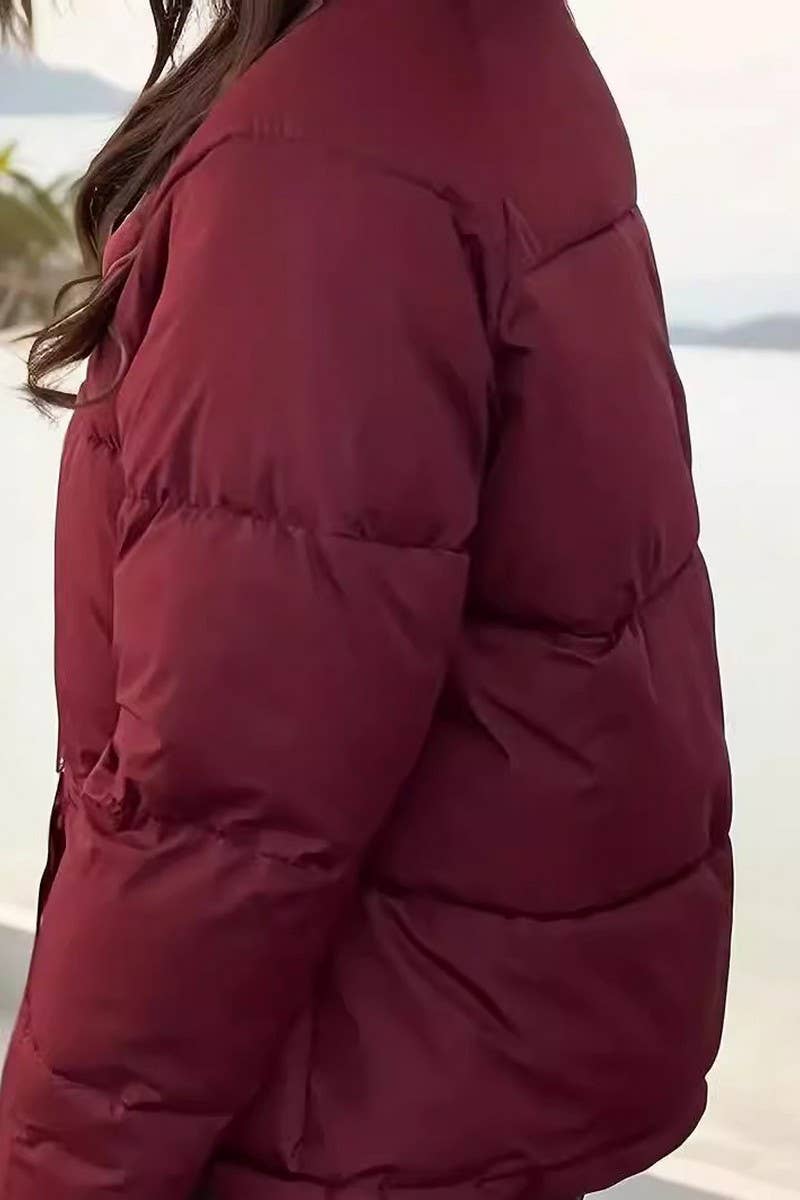 STAND COLLAR THICKENED SOLID COLOR COTTON COAT